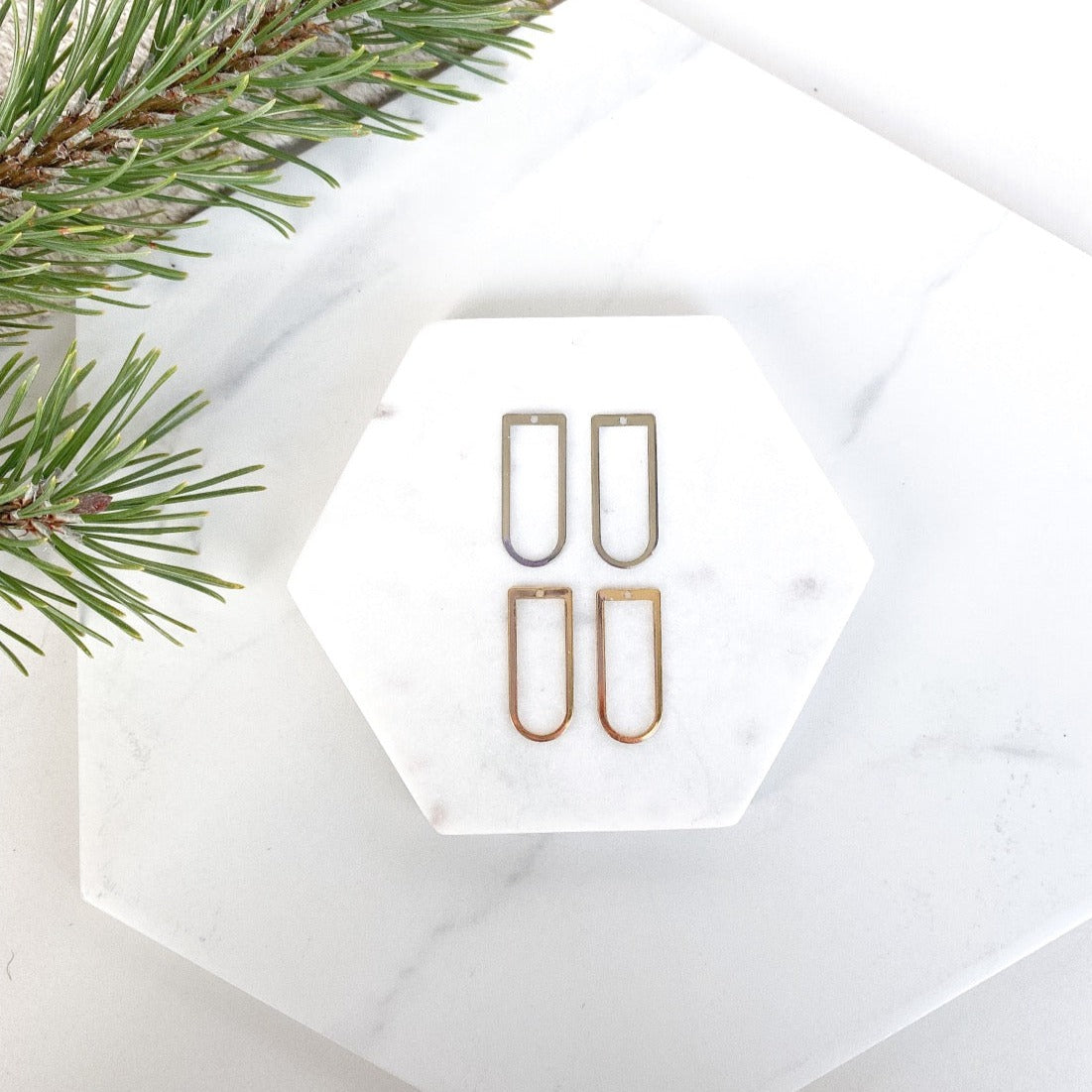 All brass naturally tarnishes over time, which gives it that organic and unique look that we all love. What causes brass to tarnish is the copper within the metal. When copper comes into contact with your skin it’s very common for it to oxidize, and if you’re allergic to brass or have really sensitive skin the oxidation can sometimes turn your skin green. If that’s the case, I recommend wearing sterling silver or gold instead.
