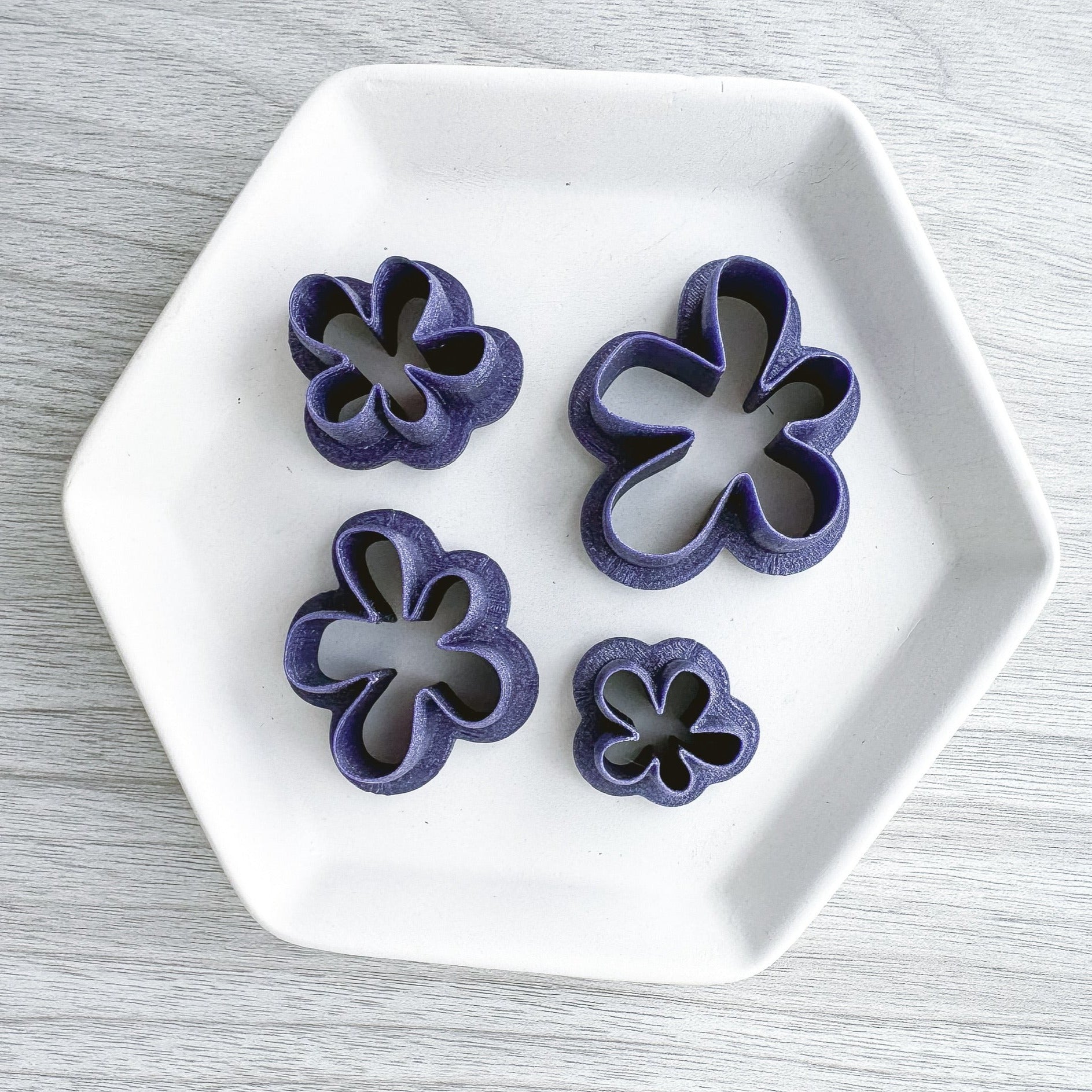 Wash cutters with clean soapy water or wipe down with a wet cloth. Wipe between uses to avoid color transfer. Do not place cutters into dishwasher or oven (Yes, it will melt!)
