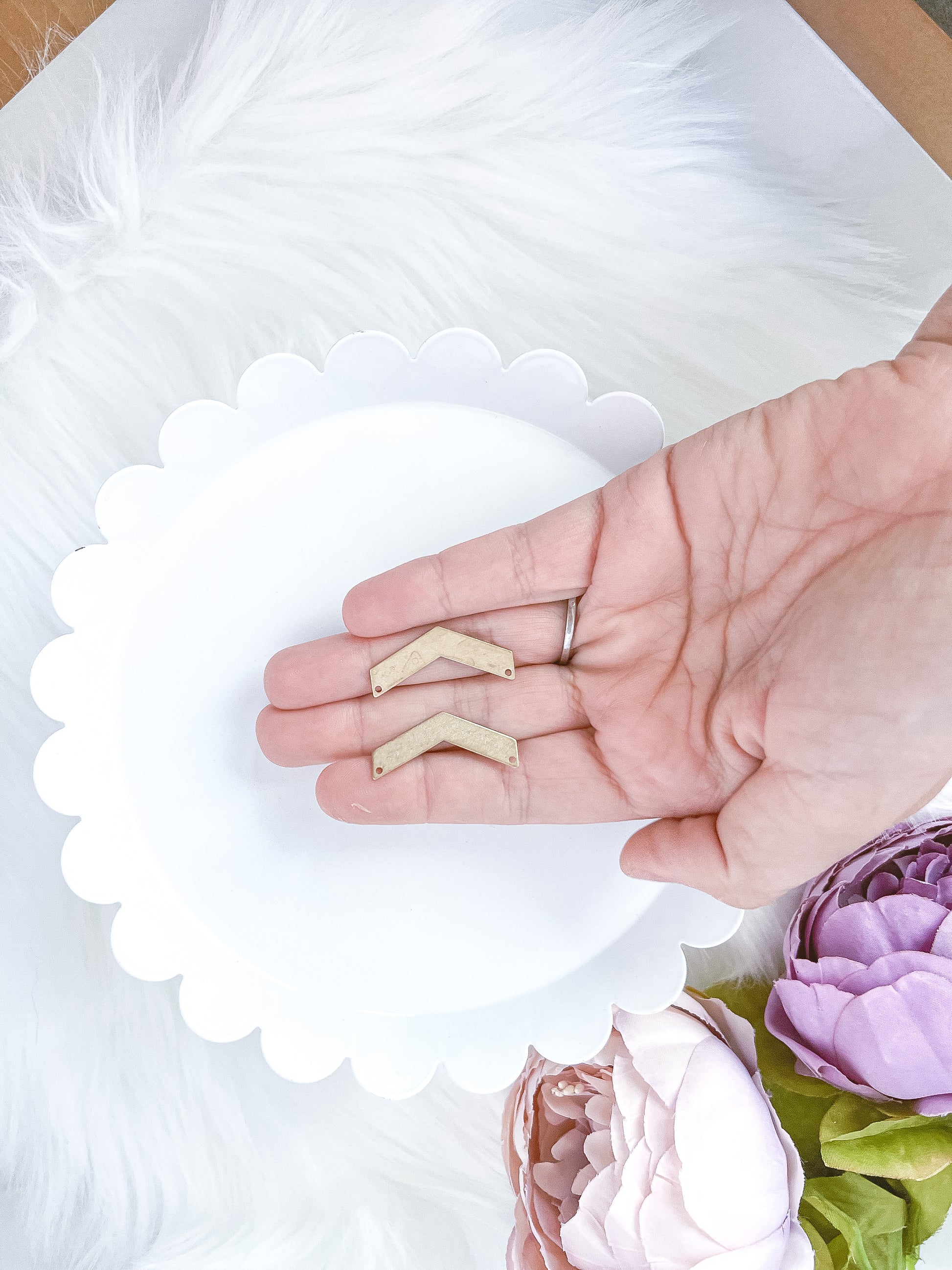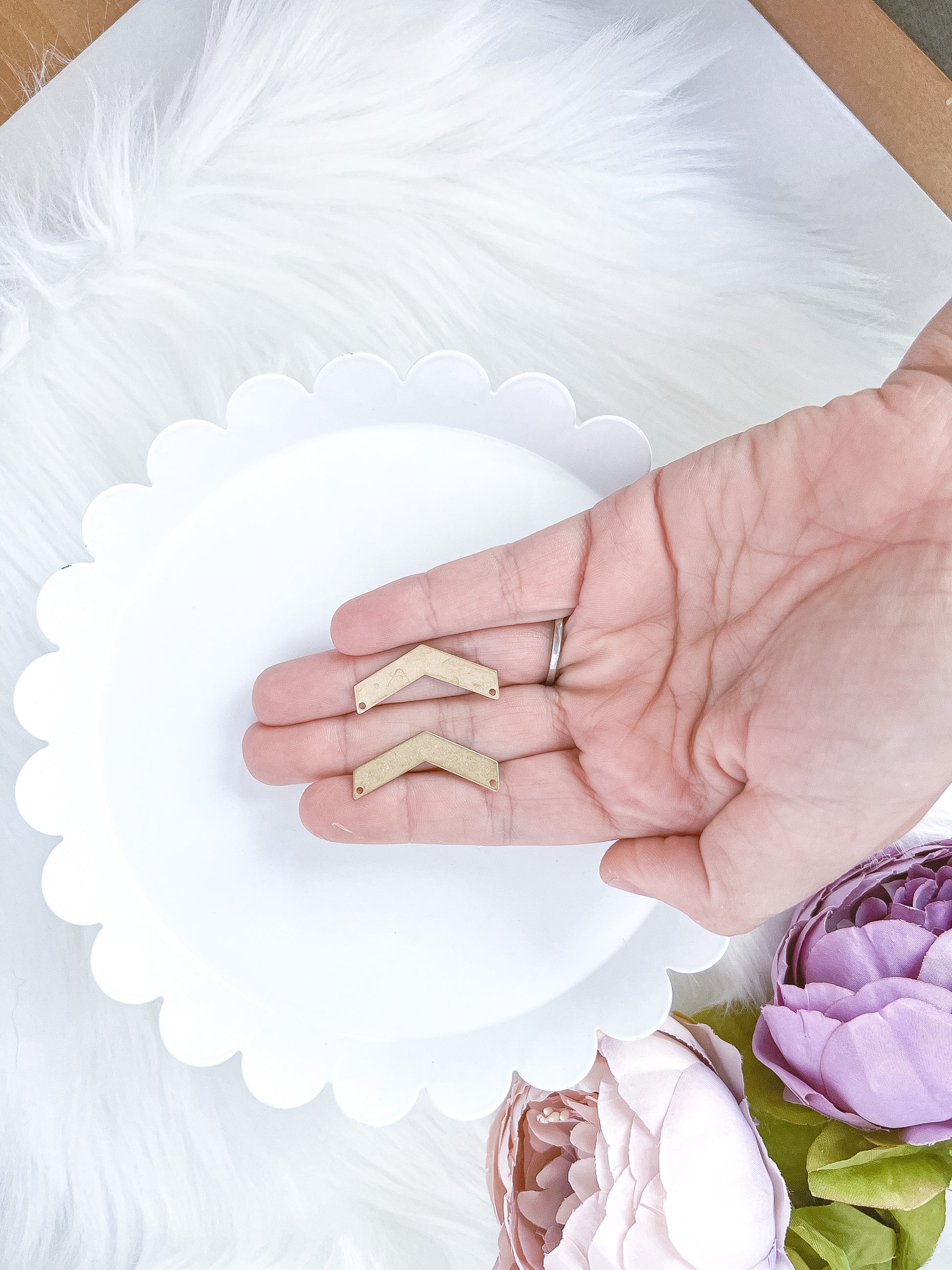 All brass naturally tarnishes over time, which gives it that organic and unique look that we all love. What causes brass to tarnish is the copper within the metal. When copper comes into contact with your skin it’s very common for it to oxidize, and if you’re allergic to brass or have really sensitive skin the oxidation can sometimes turn your skin green. If that’s the case, I recommend wearing sterling silver or gold instead.