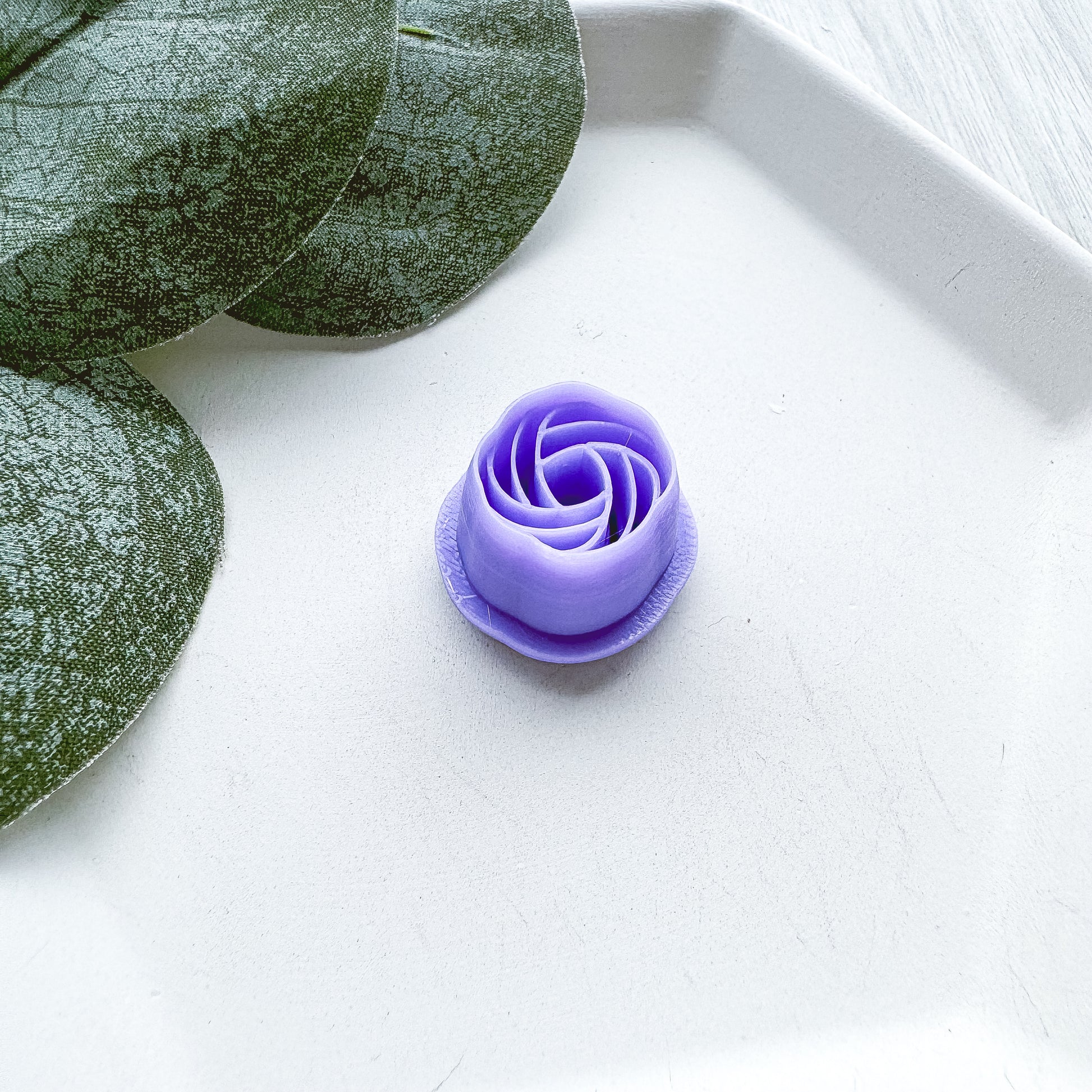 Roll clay onto a porcelain tile after conditioning. This will keep the clay on the tile and not inside the cutter. Press the cutting edge gently into your clay, making sure you cut all the way through the clay slab. You can slightly wiggle the cutter back and forth to push the surrounding clay away, making a cleaner cut edge.