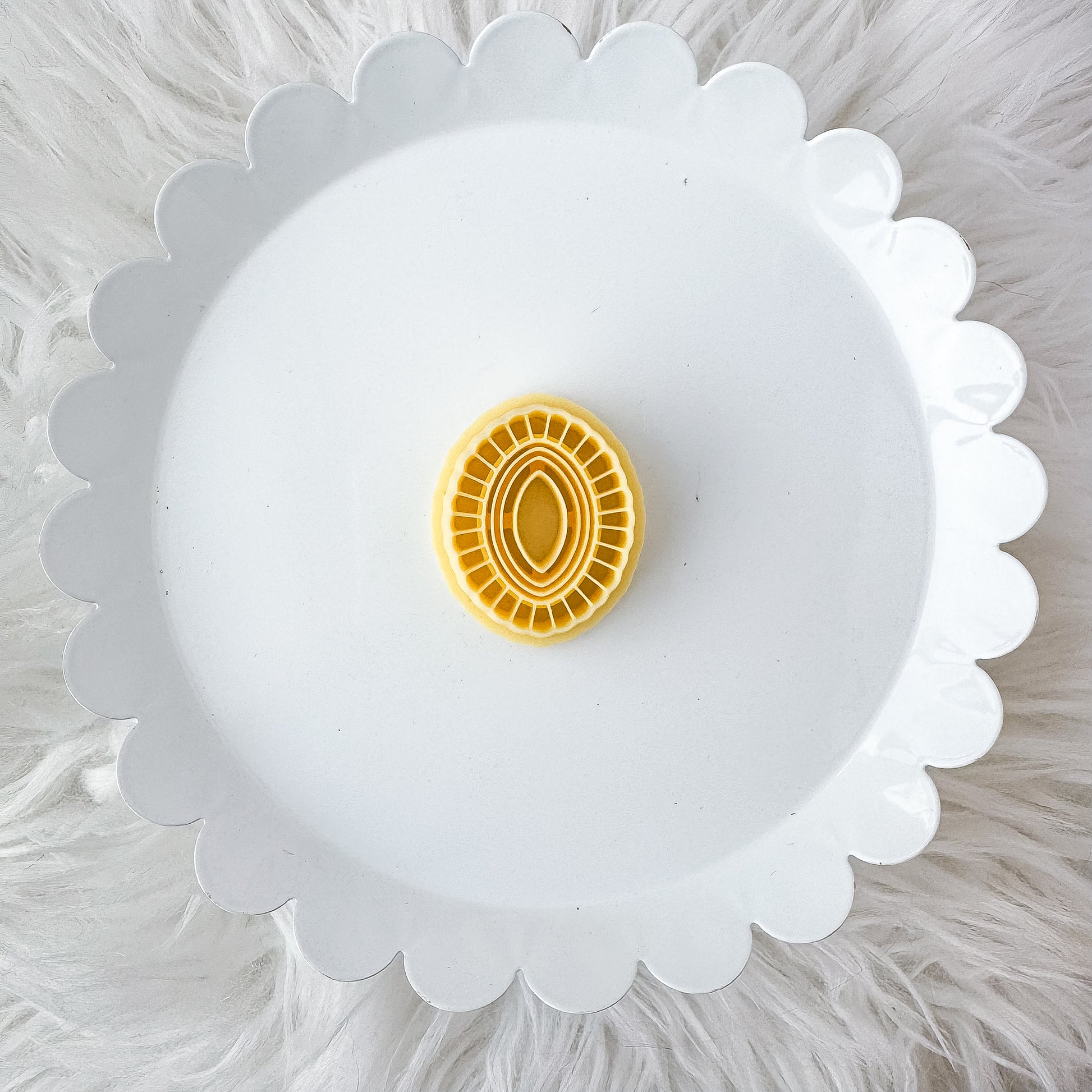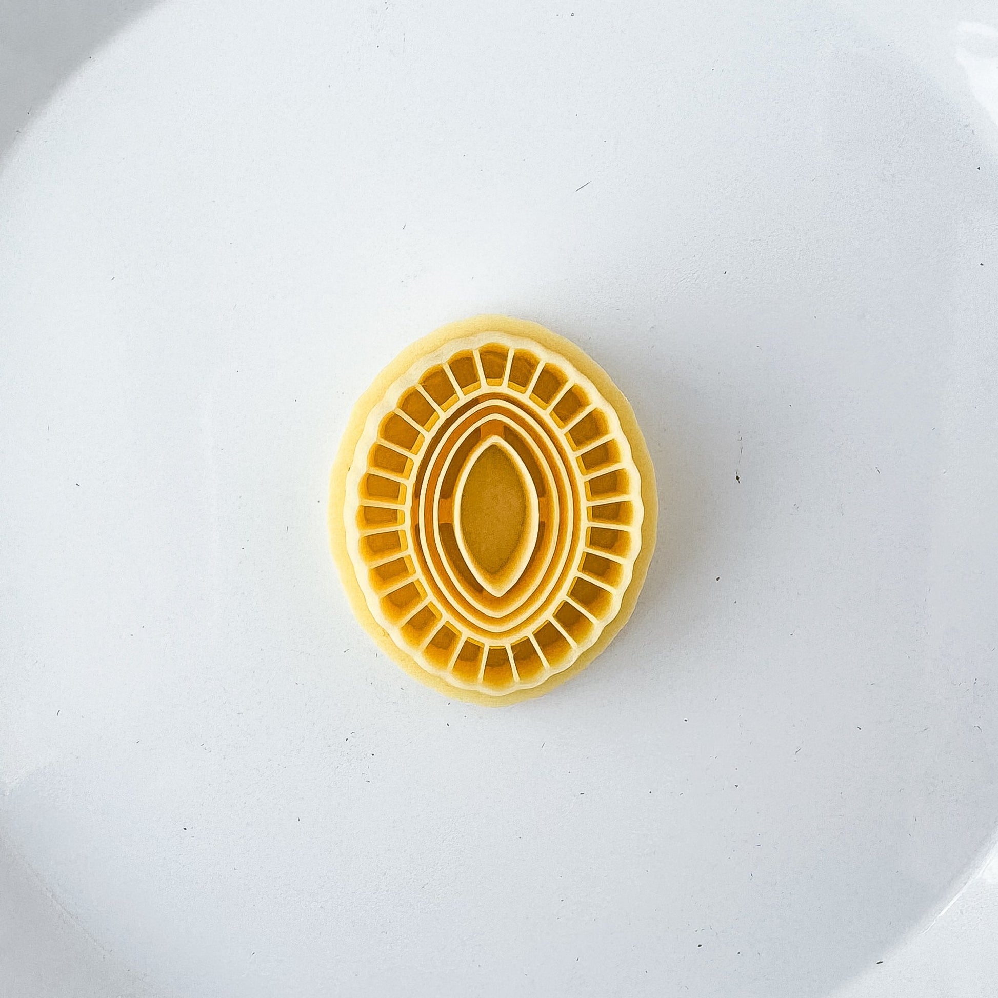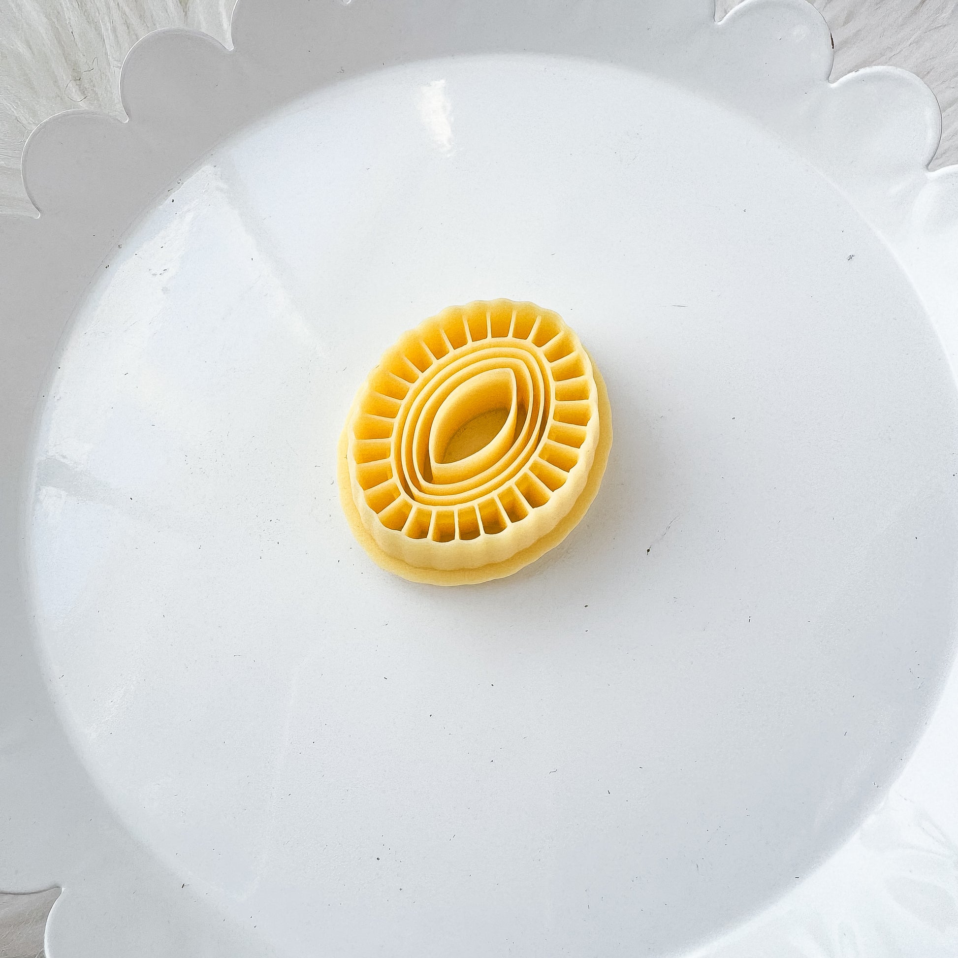 Roll clay onto a porcelain tile after conditioning. This will keep the clay on the tile and not inside the cutter. Press the cutting edge gently into your clay, making sure you cut all the way through the clay slab. You can slightly wiggle the cutter back and forth to push the surrounding clay away, making a cleaner cut edge.